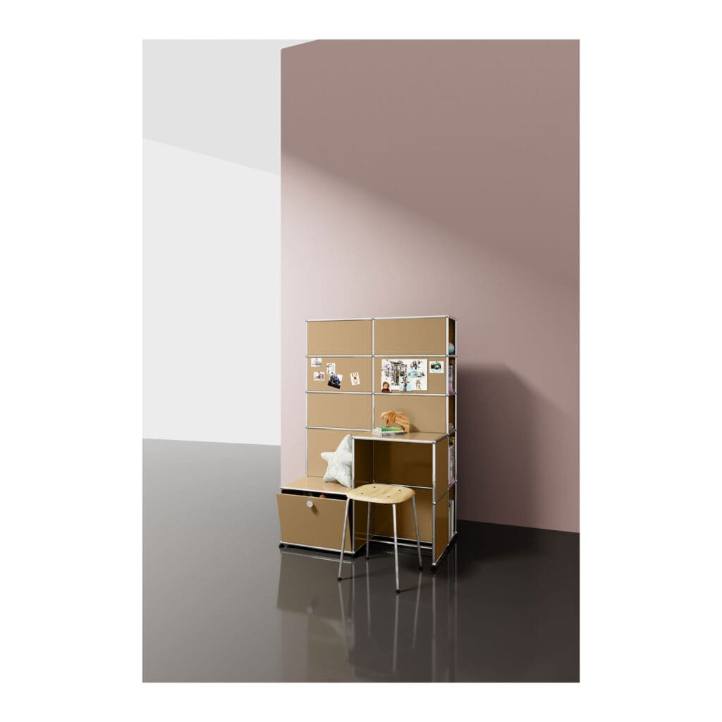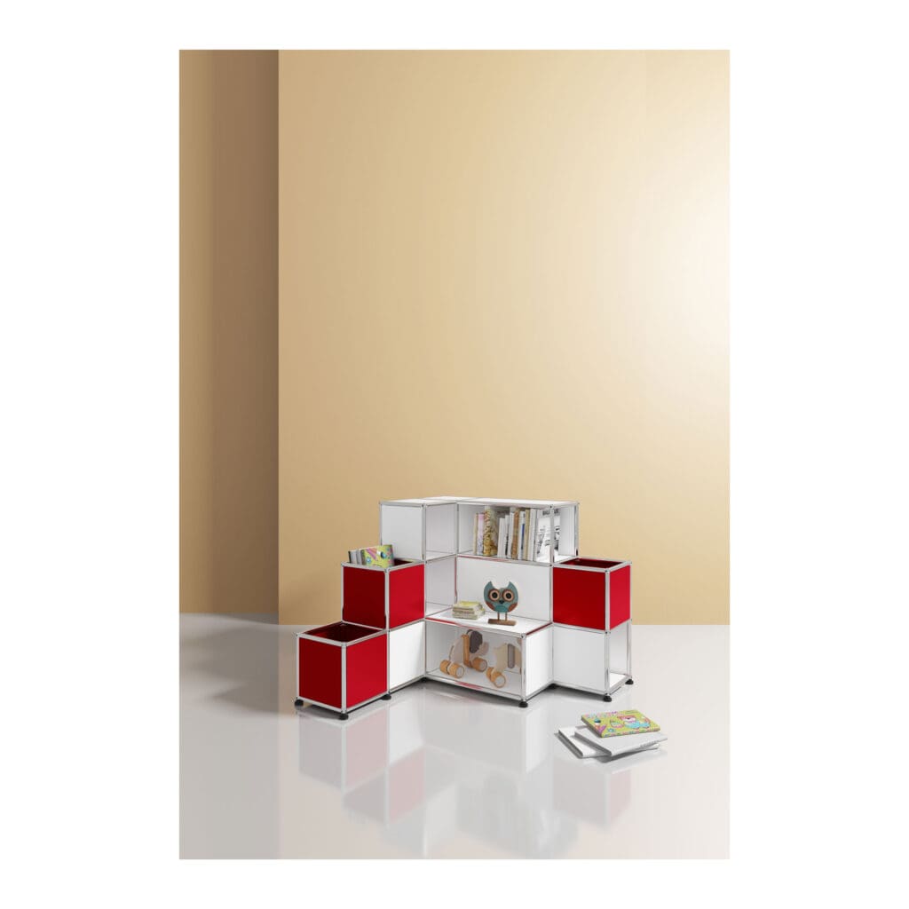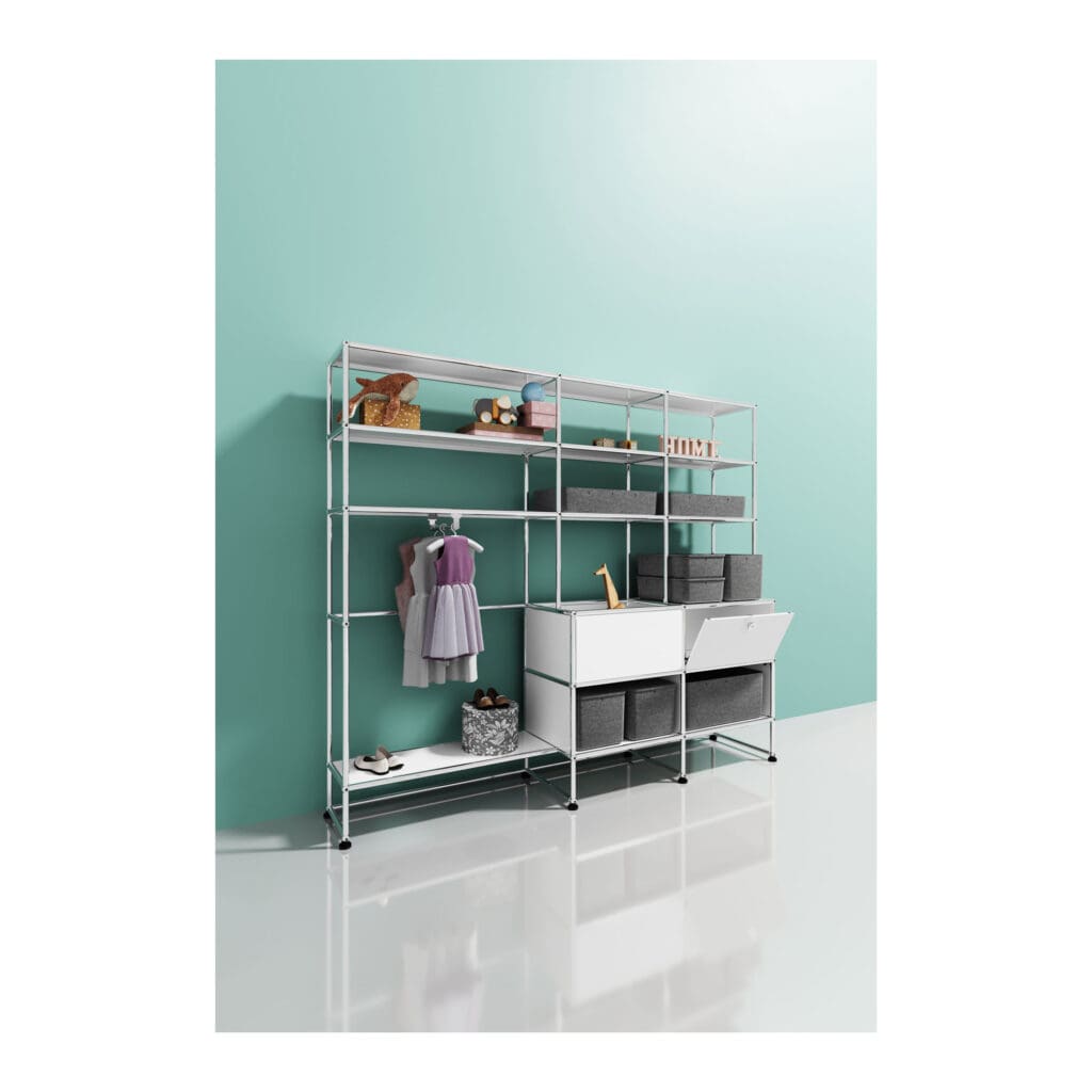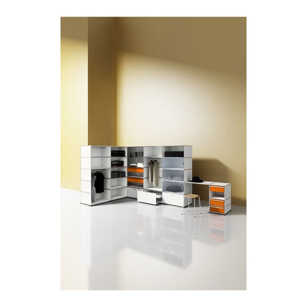 Early Haller works such as the Kantonsschule, Baden from 1960 or the 1957 Weststadtschulhaus in Solothurn beautifully demonstrate the Haller approach to design. Fritz Haller’s based his work on three systems; the “mini” for private houses and offices, “midi” for taller buildings and “max” for industrial complexes. All three systems are based on the same steel frame construction principle, just at varying scales. In 1963 at the bequest of Ulrich Schärer Münsingen (born a local producer of metal products, Fritz Haller extended his mini/midi/maxi system to furniture design, and in doing so created the now world famous System USM Haller. Based around a system of steel tubes, steel panels and, most importantly, a chromium plated brass ball, the USM Haller modular furniture is without question the design for which Fritz Haller is most famous for.