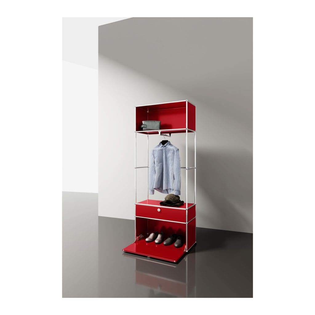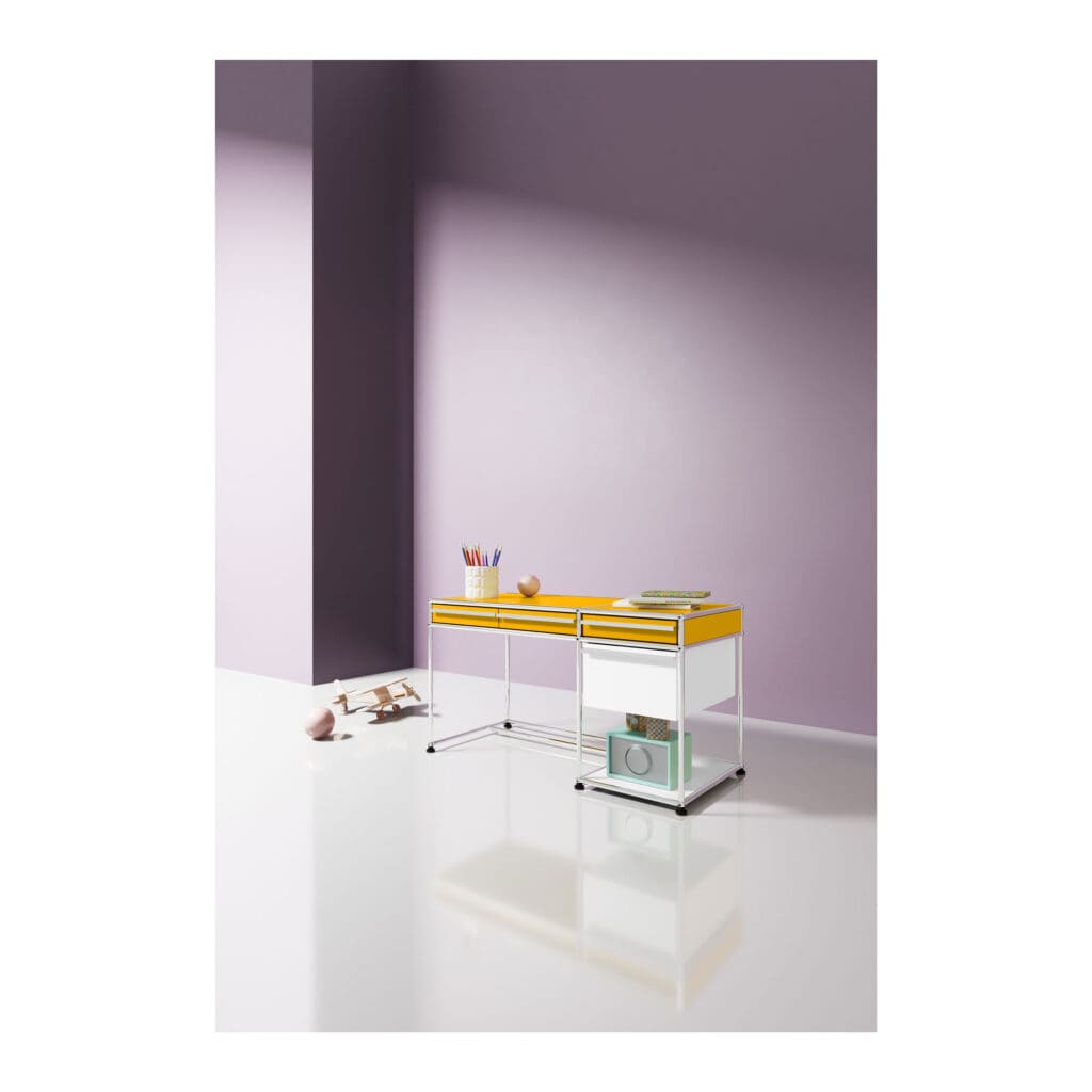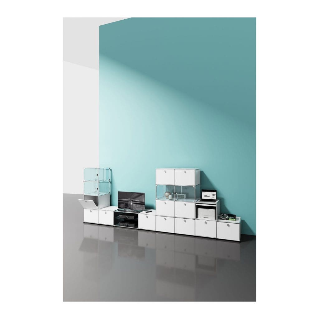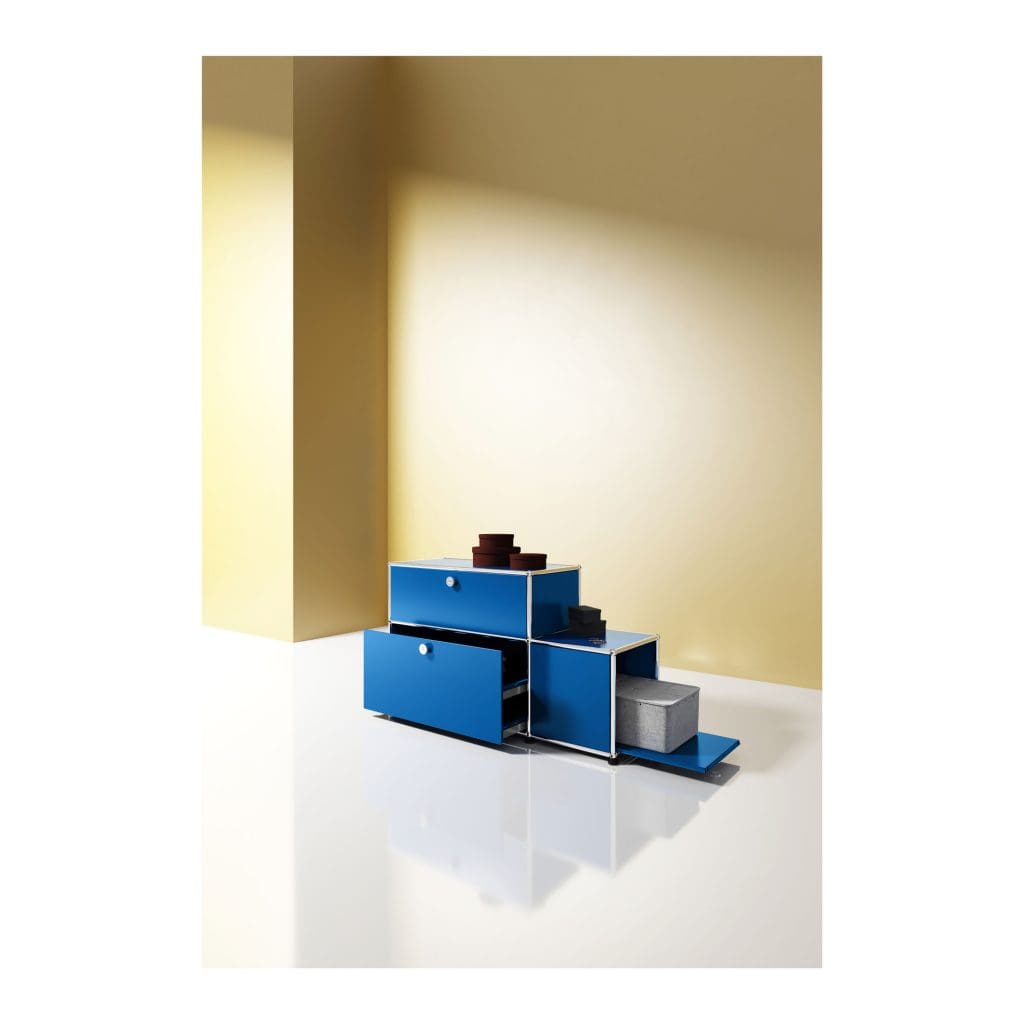 Early Haller works such as the Kantonsschule, Baden from 1960 or the 1957 Weststadtschulhaus in Solothurn beautifully demonstrate the Haller approach to design. Fritz Haller’s based his work on three systems; the “mini” for private houses and offices, “midi” for taller buildings and “max” for industrial complexes. All three systems are based on the same steel frame construction principle, just at varying scales. In 1963 at the bequest of Ulrich Schärer Münsingen (born a local producer of metal products, Fritz Haller extended his mini/midi/maxi system to furniture design, and in doing so created the now world famous System USM Haller. Based around a system of steel tubes, steel panels and, most importantly, a chromium plated brass ball, the USM Haller modular furniture is without question the design for which Fritz Haller is most famous for.