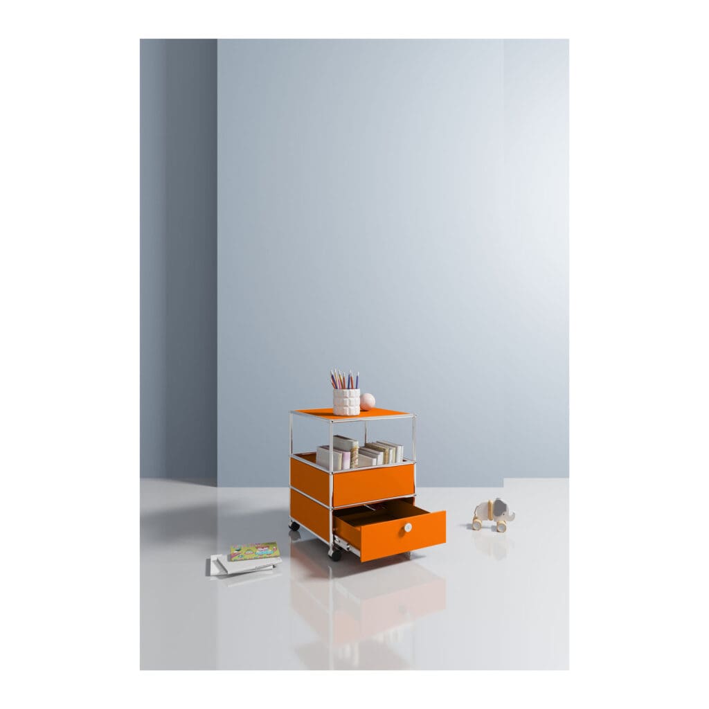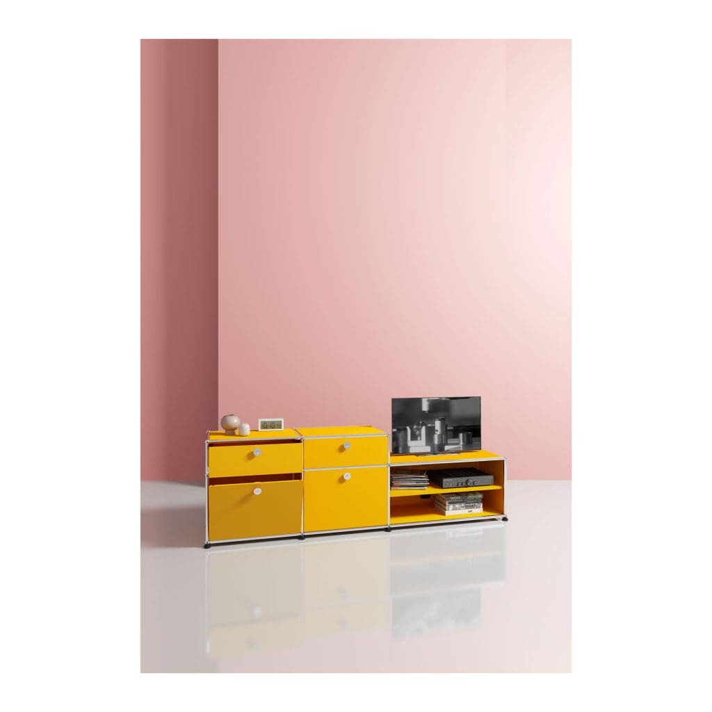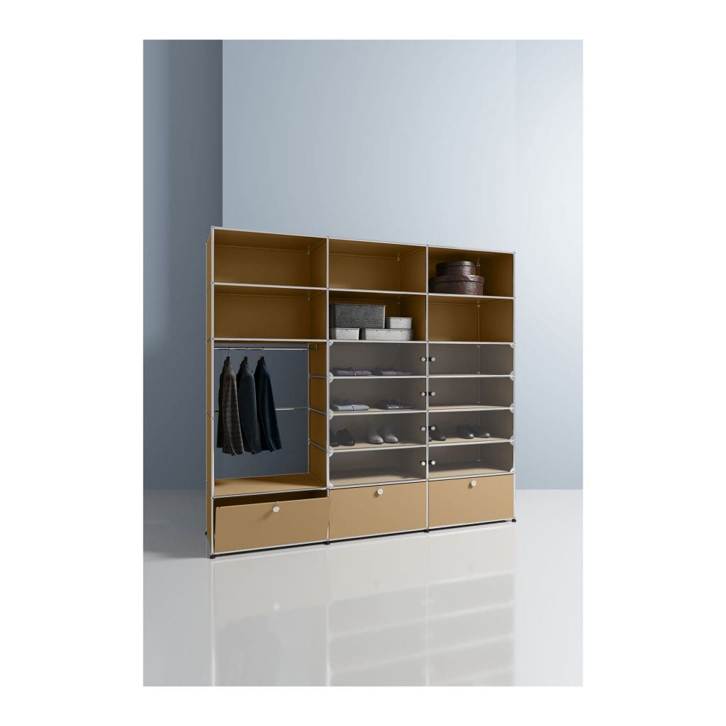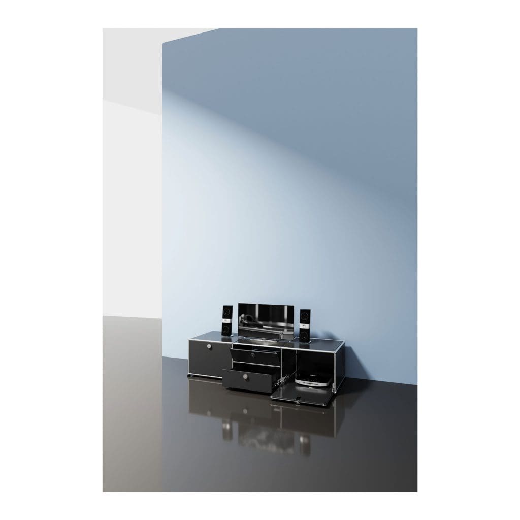 Early Haller works such as the Kantonsschule, Baden from 1960 or the 1957 Weststadtschulhaus in Solothurn beautifully demonstrate the Haller approach to design. Fritz Haller’s based his work on three systems; the “mini” for private houses and offices, “midi” for taller buildings and “max” for industrial complexes. All three systems are based on the same steel frame construction principle, just at varying scales. In 1963 at the bequest of Ulrich Schärer Münsingen (born a local producer of metal products, Fritz Haller extended his mini/midi/maxi system to furniture design, and in doing so created the now world famous System USM Haller. Based around a system of steel tubes, steel panels and, most importantly, a chromium plated brass ball, the USM Haller modular furniture is without question the design for which Fritz Haller is most famous for.