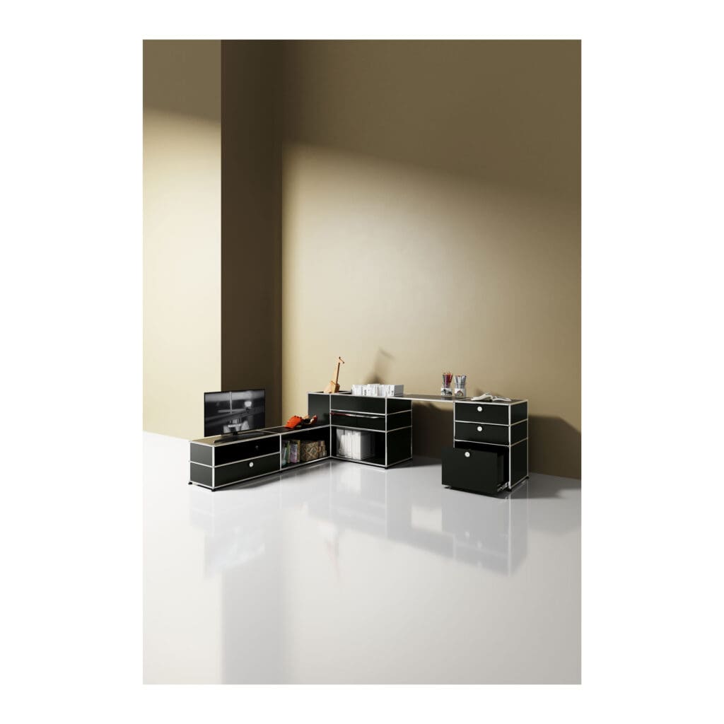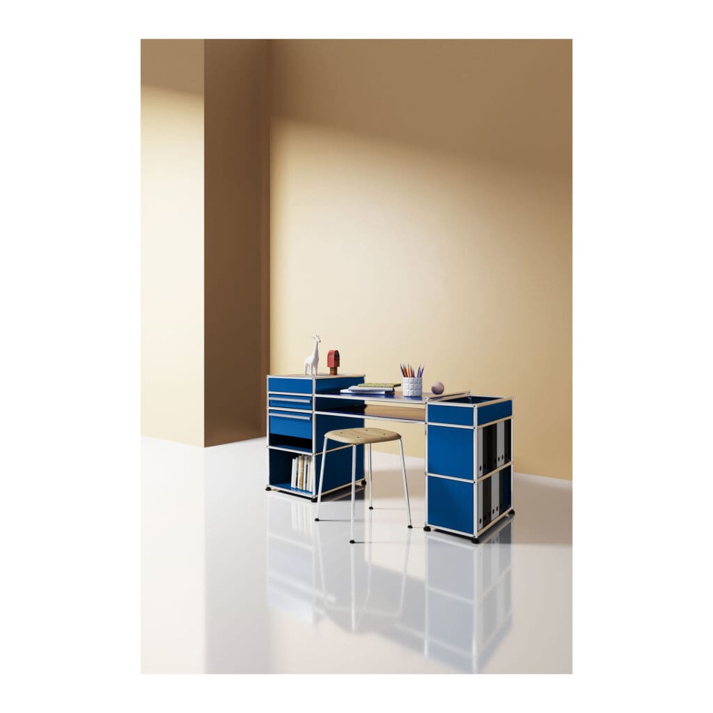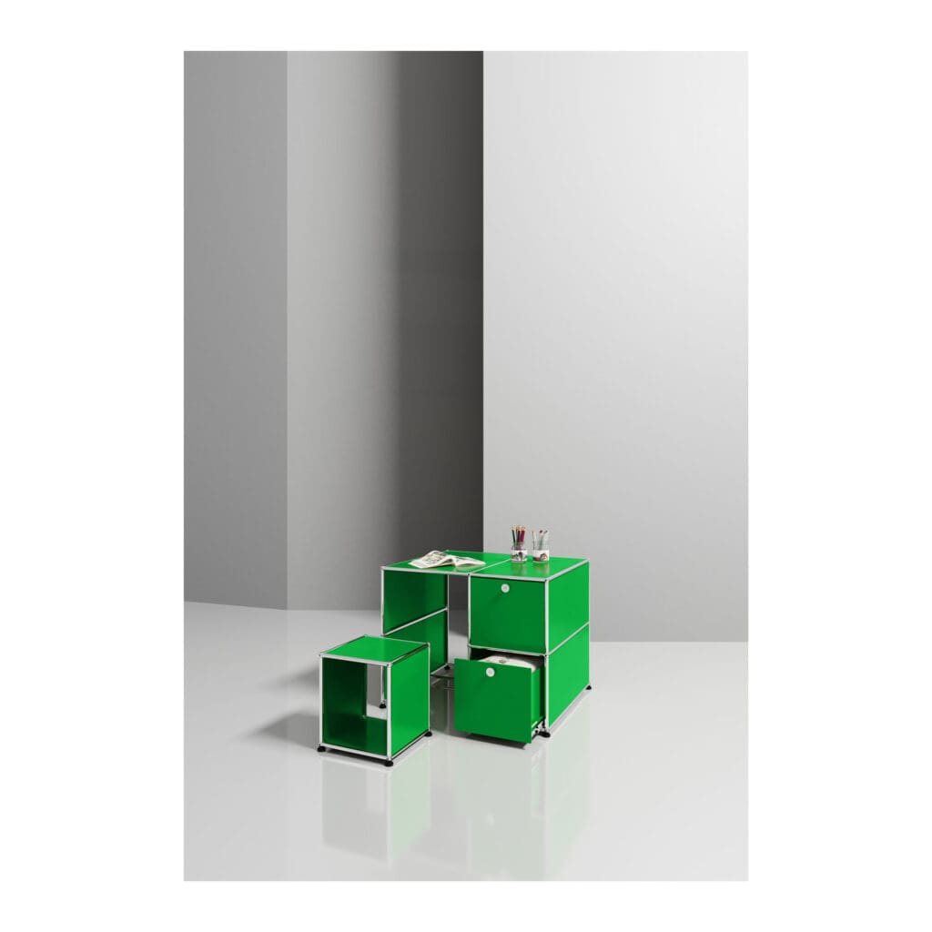 Fritz Haller (born 23. October 1924 in Solothurn/Switzerland) is perhaps the best example of an architect who has successfully transferred their architectural competence into furniture design. Many architects have been successful, but few so successful as Fritz Haller. After qualifying as a draftsman Haller initially gathered experience through short engagements with numerous Swiss architects before travelling to Rotterdam to help work on post-war re-building projects. In 1949 Fritz Haller returned to Solothurn where he began working in his father Bruno’s architecture firm. Defining in Haller’s work – be it his architecture or his furniture – is his use of extendable and repeatable quadratic modular systems; a sort of building block system.