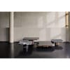 Inspired by 1970s lines and designs, Brazilian Guilherme Torres presents a side table or coffee table of casual elegance. The metal-covered surface of the body also quotes futuristic designs of the era, but it is a clearly contemporary design. The glass or marble covered tabletop floats above a base with rounded edges. The table is available in five sizes. Combined in different heights, the tables can be arranged as a group with overlapping tabletops, resulting in a dynamic sculpture with a generous and multi-level storage surface. The ensemble is complemented by the Bow Coffee Table No. 3 Marble, completely made of white or black marble. Combined with the other sizes in brass, it establishes an interesting contrast of materials.