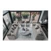 Variants: Sofa, multilayer and solid wood frame, with elastic belts, upholstered with polyurethane foams, removable covers. Four back cushions in dacron and down 60 x 60 cm and two 50 x 50 cm.