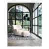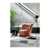 The beauty of simplicity and comfort take shape in the Loll collection. Composed of cosy and comfortable sofas and armchairs, Loll speaks of contemporary comfort, combined with attention to detail, the quality of the materials and the uniqueness of the craftsmanship. The profile of the sofas is underlined by the characteristic sew/cut which, like a light line drawn by hand, follows the essential geometries and soft lines of the collection. The LOLL 09 armchair has an enveloping structure whose particularity is found in the proportions between the seat and the backrest: the latter surrounds the seat padded with high-density polyurethane foam in different densities like a nest. With a solid wood structure with springing by elastic belts with a high rubber component, the armchair is characterised by a removable cover, and is further embellished by the swivel base with return mechanism.