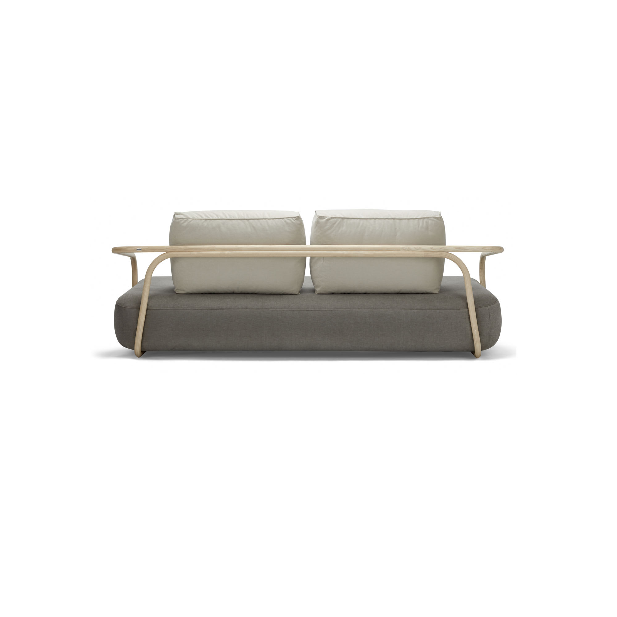 Variants: The solid bentwood of the sofa and armchair is available in stained or lacquered beech or in oiled, lacquered or stained ash. The cushions can be purchased individually with a wide range of cover materials to choose from.