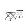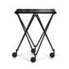 Sax is a constructivist masterpiece. Its patented mechanism reveals completely new aspects in the concept of the heightadjustable table. The scissor frame is fixed to elements that can be moved along the table‘s edge. A small turn of the hand changes Sax from a low side table into a high serving trolley and vice versa. With its variably adjustable table height and rollers Sax is a practical companion with many faces and possible uses.