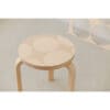 Stool 60 Kivet unites two iconic Finnish designs: Alvar Aalto’s famous 1933 “L-leg” stool and Marimekko’s Kivet (stones) pattern, created by Maija Isola for the Arkkitehti print series. The 1956 design was likely inspired by the large rough-edged stones manually cleared from the grounds of Isola’s atelier home. Marimekko’s joyful essence elevates the stool’s versatile design, adding a touch of playfulness to living spaces. The Kivet pattern is presented using marquetry on the stool’s birch veneer seat top. Contrasting wood grains create a shimmering effect, as light, pattern and wood interact to bring the pattern to life. The stool is made from responsibly sourced Finnish birchwood at Artek’s factory near Turku in south-western Finland. The craftmanship and materials used reflect Artek and Marimekko’s pursuit of long-lasting design, and the marquetry production process minimises wood waste.