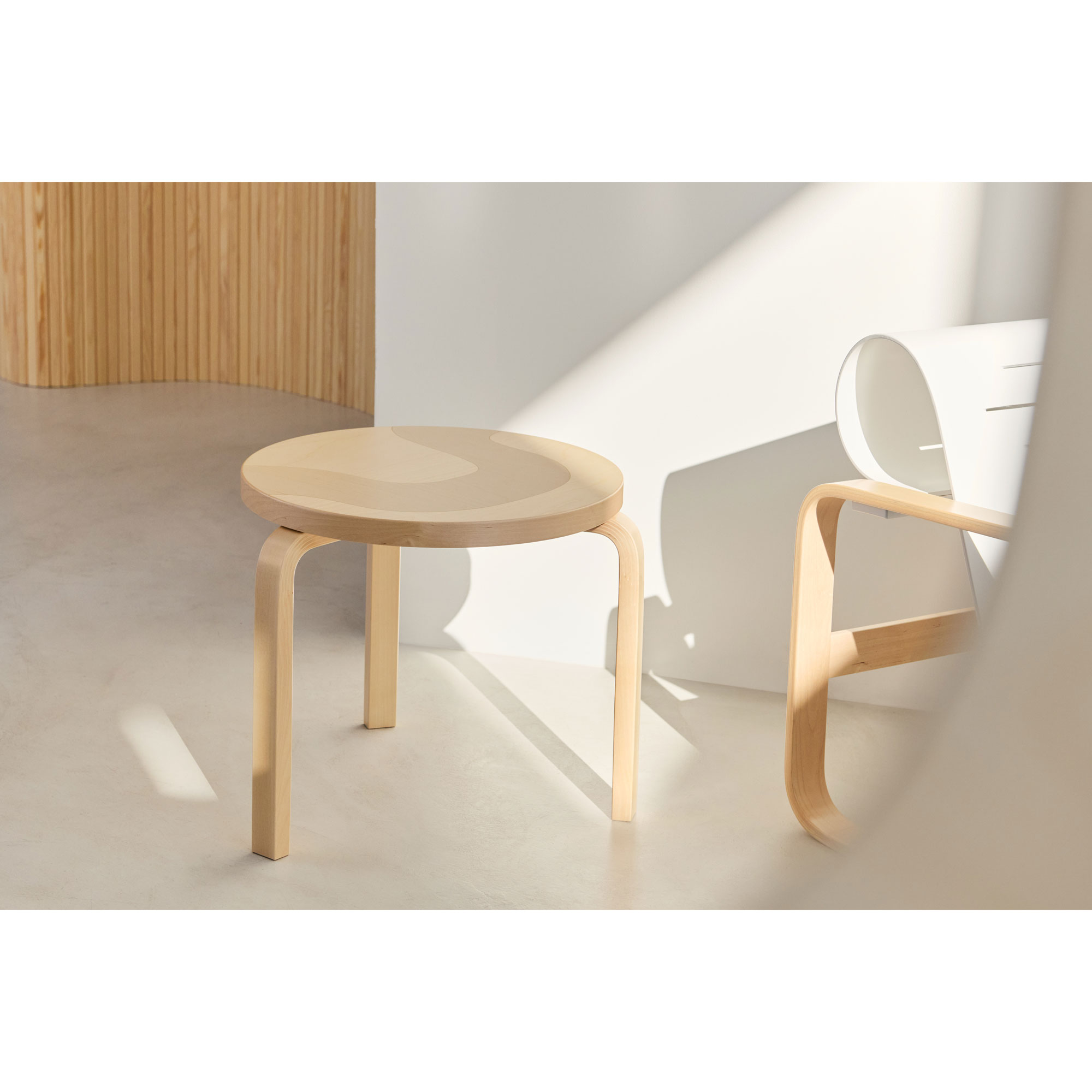 Table 90D Seireeni brings together Alvar Aalto’s concept of versatile birch furniture and Marimekko’s bold and joyful essence. Inspired by the movement of water, the Seireeni pattern was created by Maija Isola in 1964 during her travels in Greece and named after the mythical sirens of the sea. The table’s round, low form makes it suitable for a variety of settings — by the sofa, bedside, or as a coffee table. The Seireeni pattern is presented using marquetry on the table’s birch veneer top. Contrasting wood grains create a shimmering effect, and the pattern is brought to life through the interaction between light, pattern and wood. Part of the Artek + Marimekko collection, this table is made from responsibly sourced Finnish birch at Artek’s factory in south-western Finland.