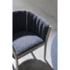 Yelek, a Turkish term for Gilet, is inspired by a tailored jacket. With the same philosophy devoted to attention to detail as the world of haute couture, Yelek is defined by a coulisse integrated into the structure that discreetly reveals itself on the shellshaped backrest that encircles the seat. A versatile and sophisticated proposal for the dining area, it is conceived to be “dressed” by a padding that, recalling the effect of a down jacket, envelops the wooden core, allowing an intermittent glimpse of the structure. Chair in ash wood frame lacquered in Date, Blueberry or Ginger colours. Upholstered seat in polyurethane on a multilayer wooden frame. Removable cover in quilted fabric. Available with all fabrics except for 3D, Quilt Malta and Quilt Velour.